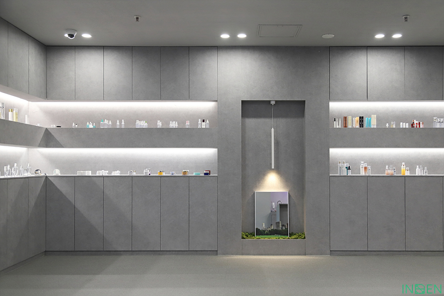 전시된 제품(화장품)이 고객의 눈길을 끌어