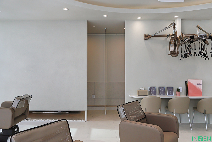 유리 파티션을 세워 샴푸실을 마련하였으며,