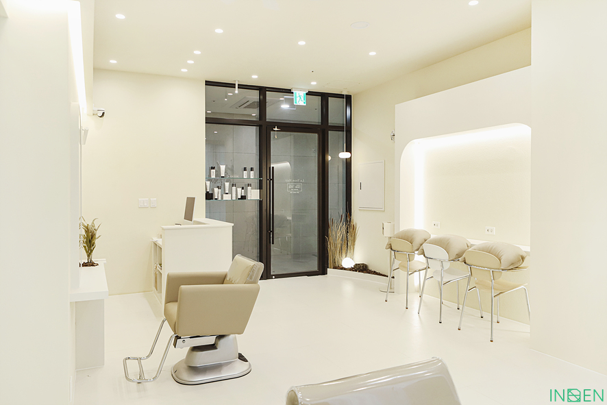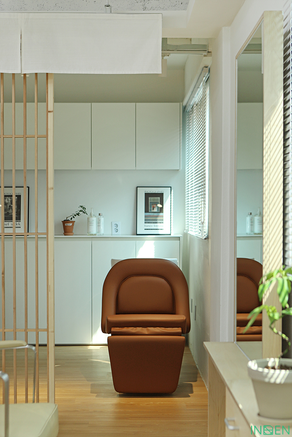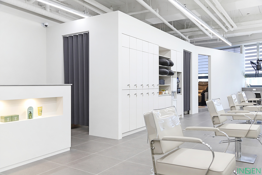 유리 파티션을 세워 샴푸실 인테리어를 진행했습니다.