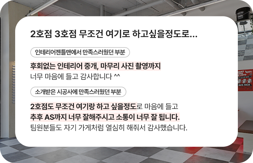 | [인테리어젠틀맨 후기] 18평 하남 무음 카페 인테리어 고객 후기 (8) | 2025.08.25 |