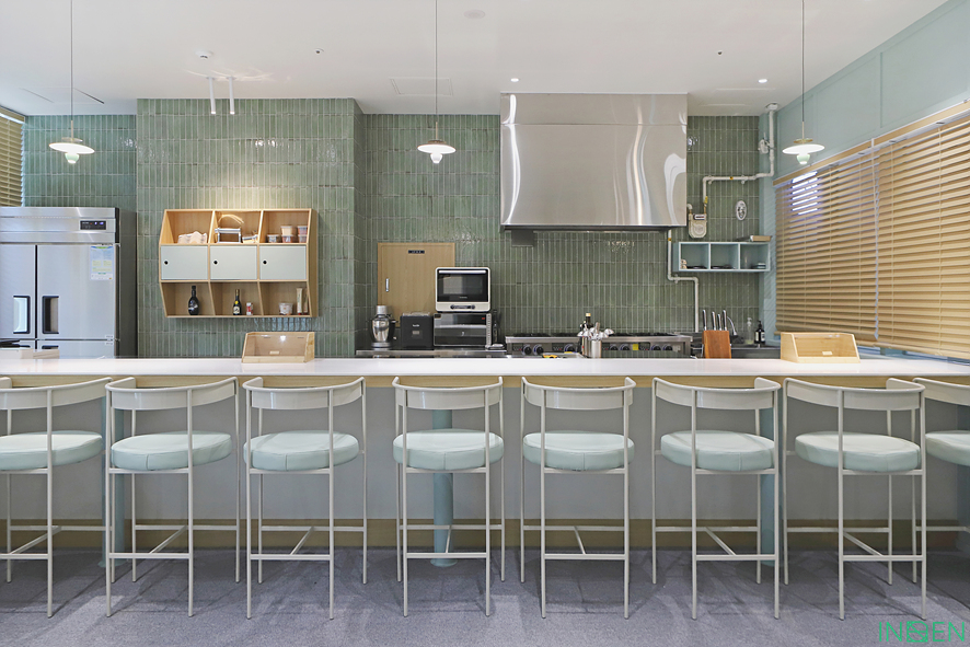 안양 라로타는 민트색의 웨인스코팅을 적용해