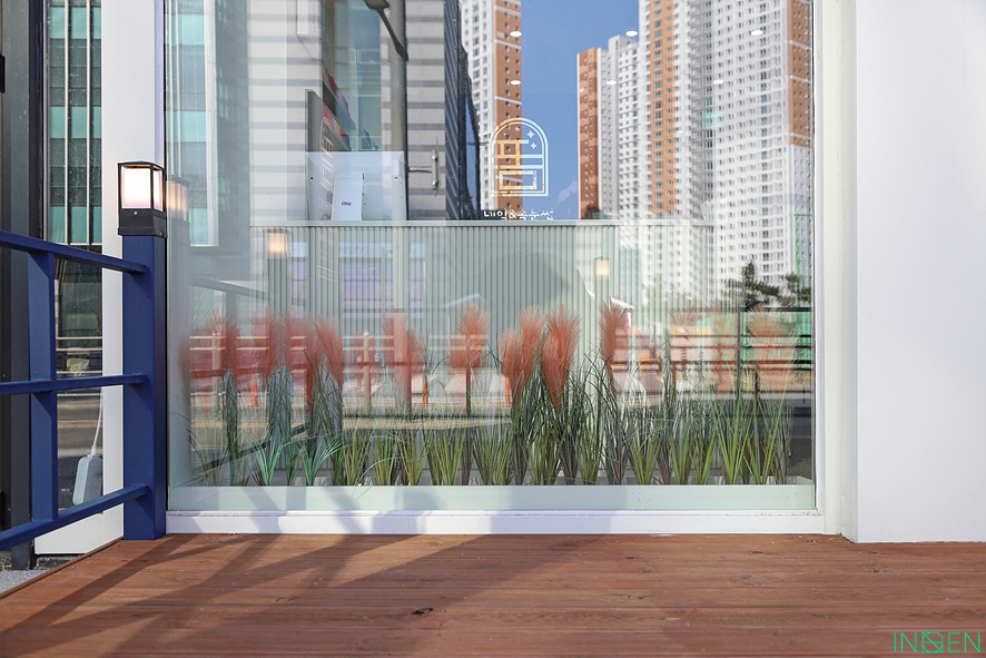 출입구 앞 데크와 포인트 울타리로