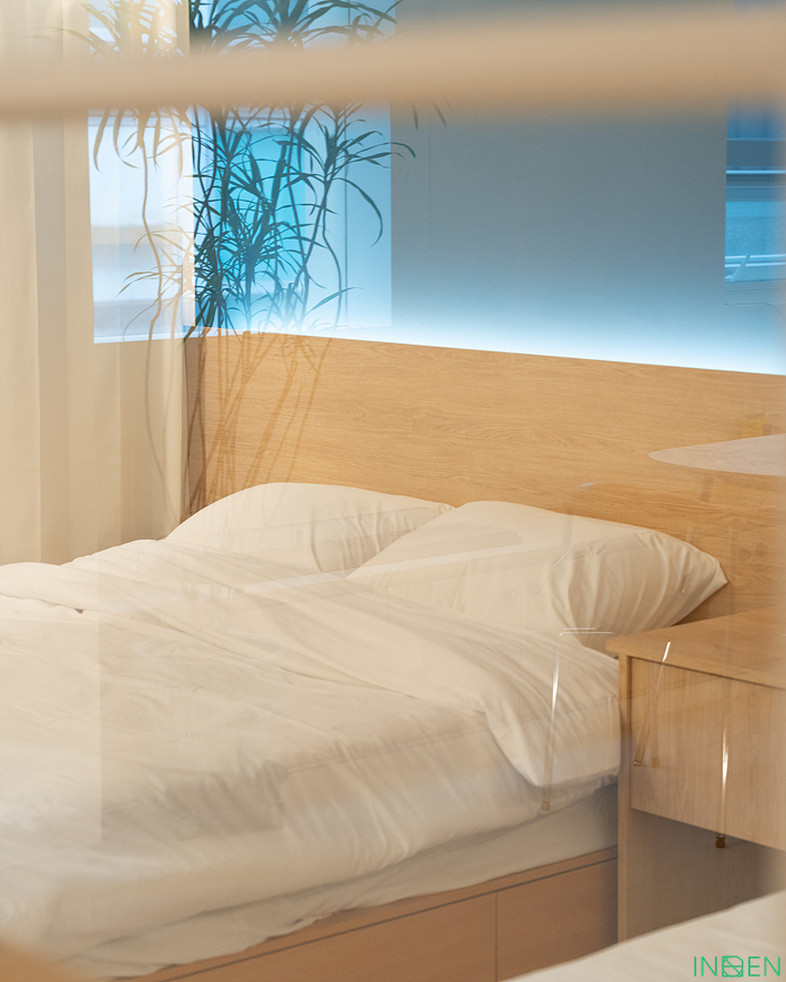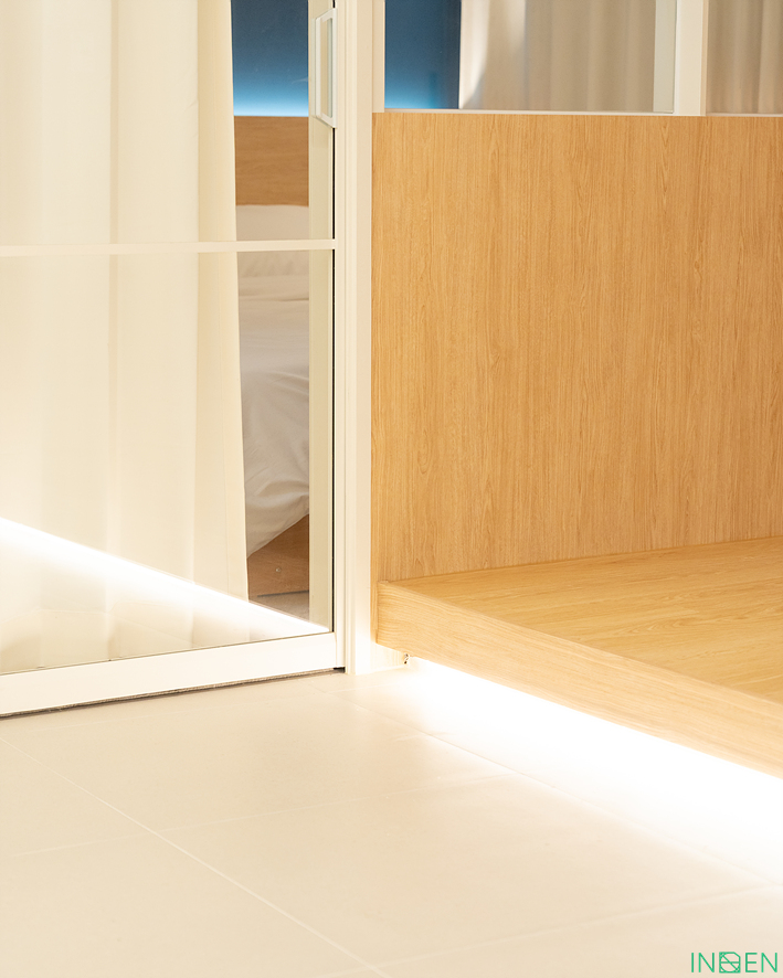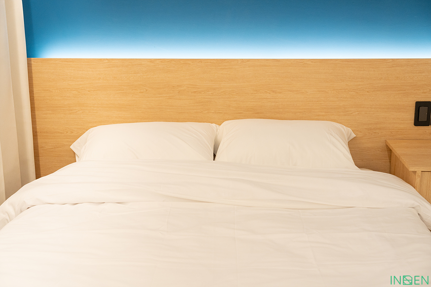 헤드보드 뒤에는 간접조명을 설치해