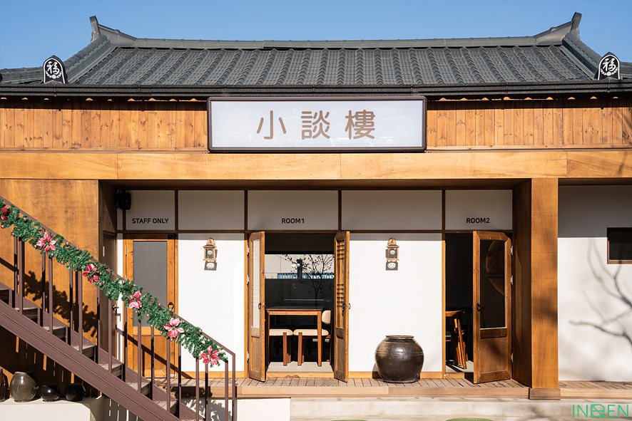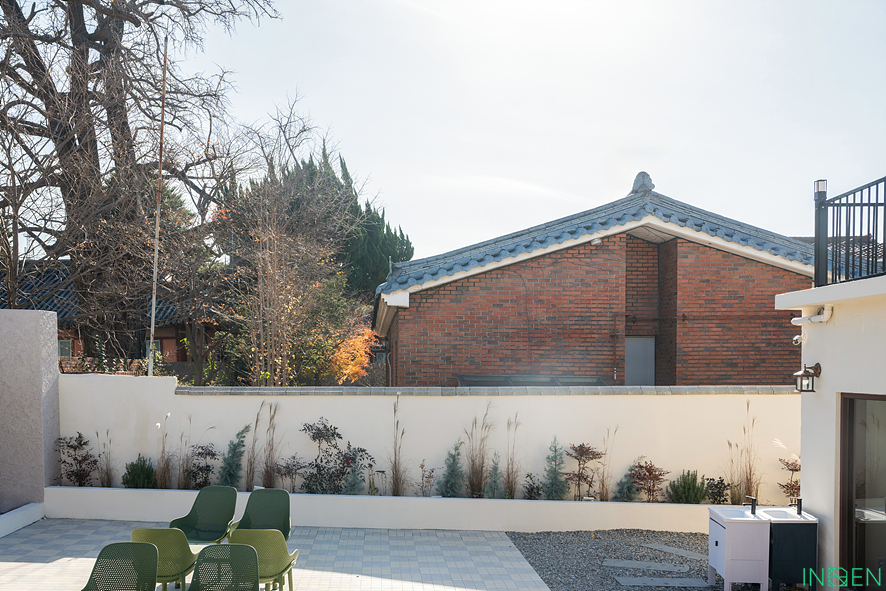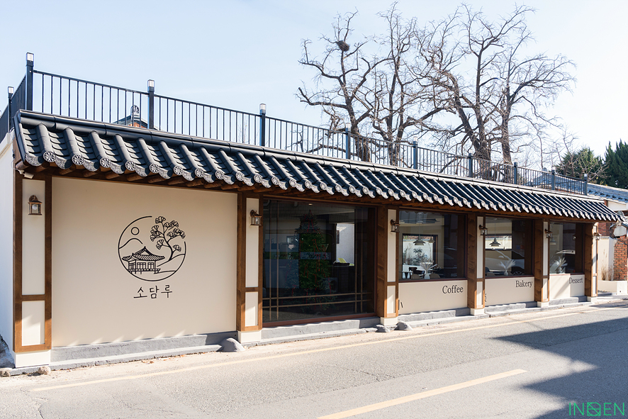 전통 기와지붕과 원목 요소를 적용했습니다.