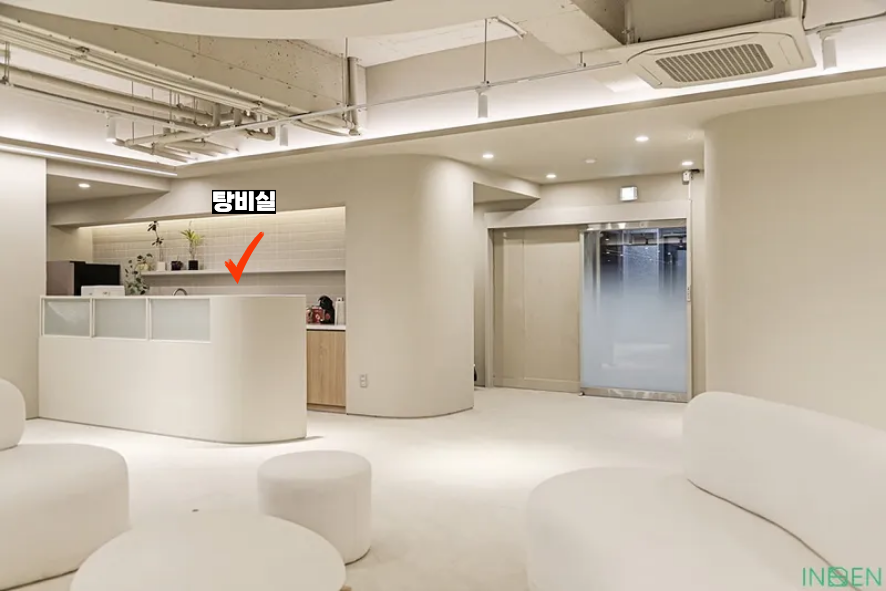로비에 있는 오픈형 오피스 공간은