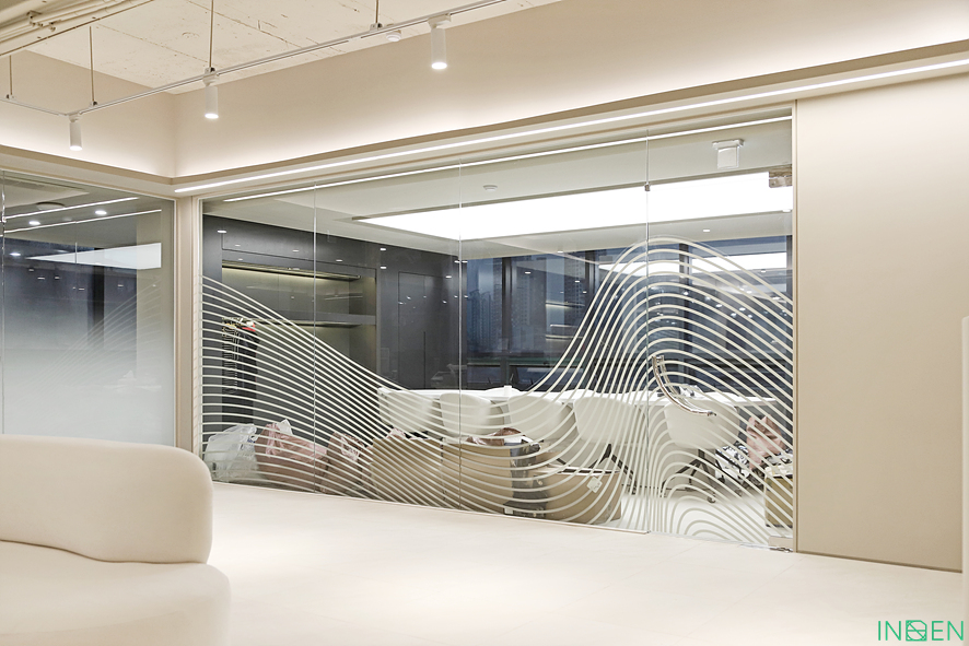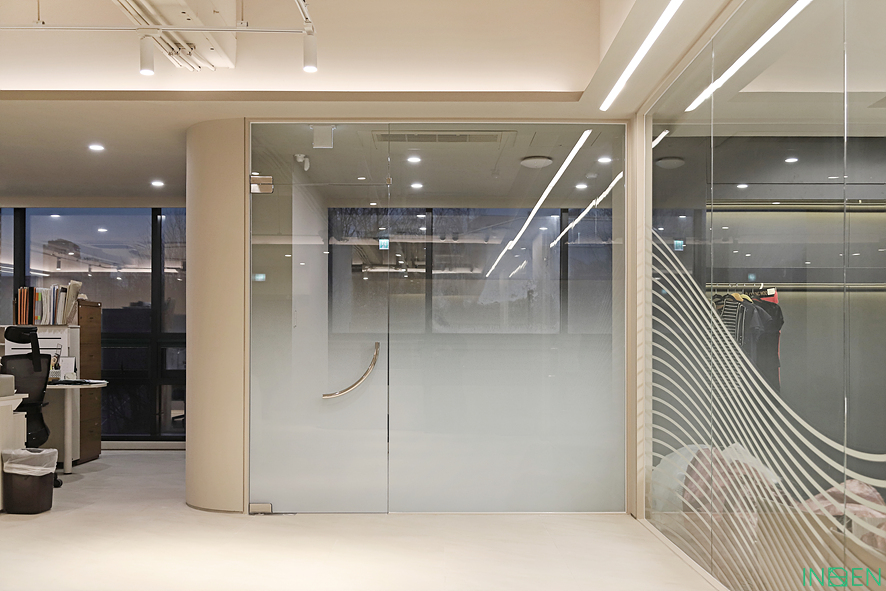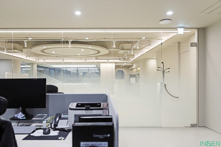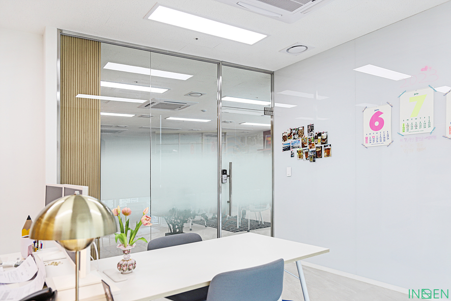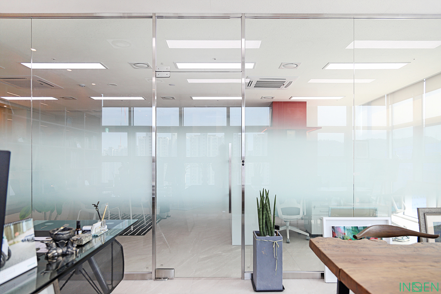 유리 파티션과 불투명한 시트지 작업으로