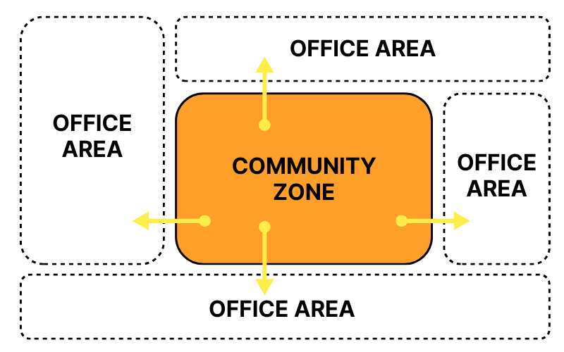 커뮤니티존, 미팅존 등의 공용 공간을 두고,