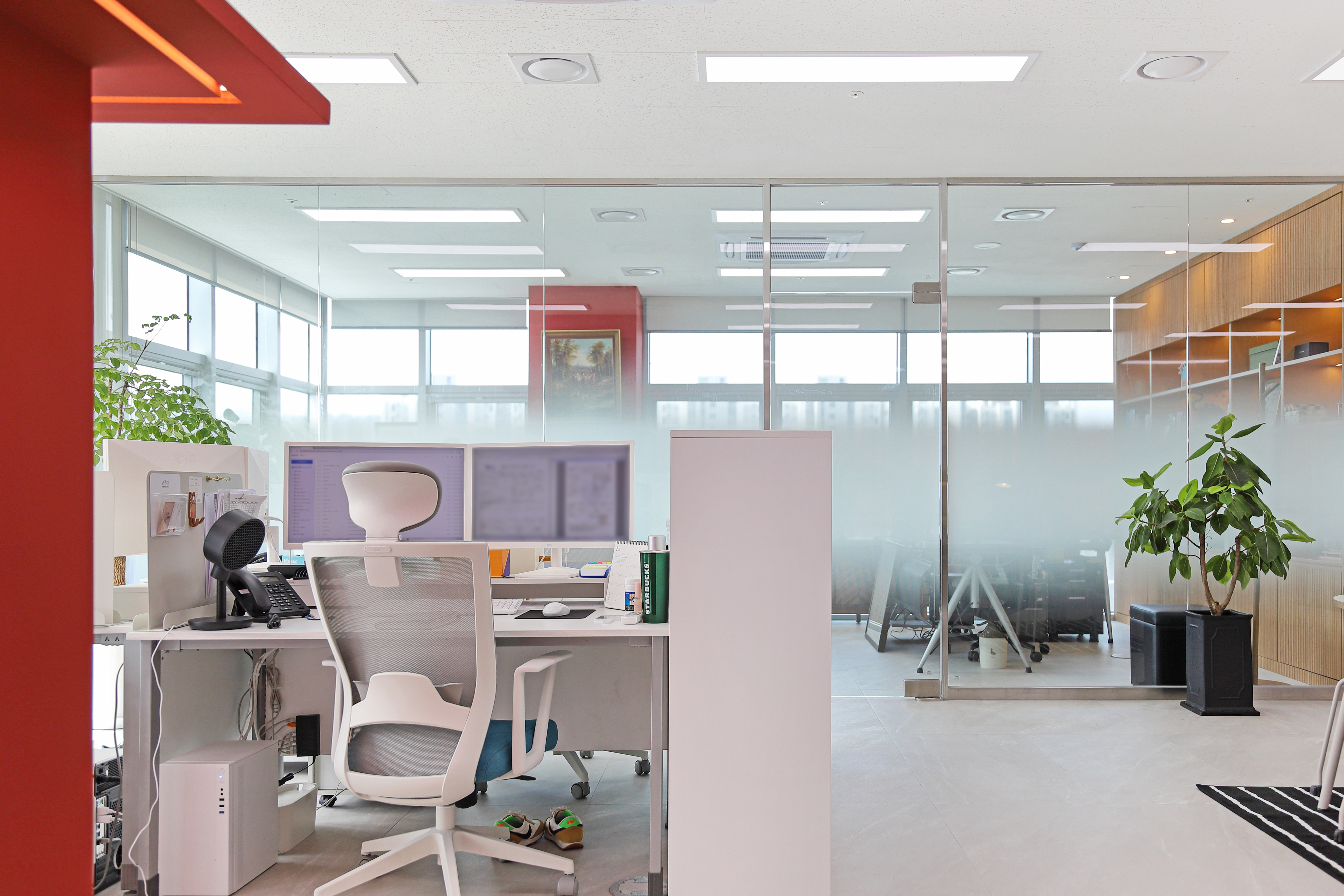 깔끔하게 완성한 사무실 입구로 들어서면