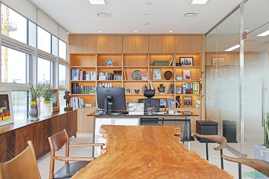 CEO 룸은 책장, 테이블, 수납장 모두