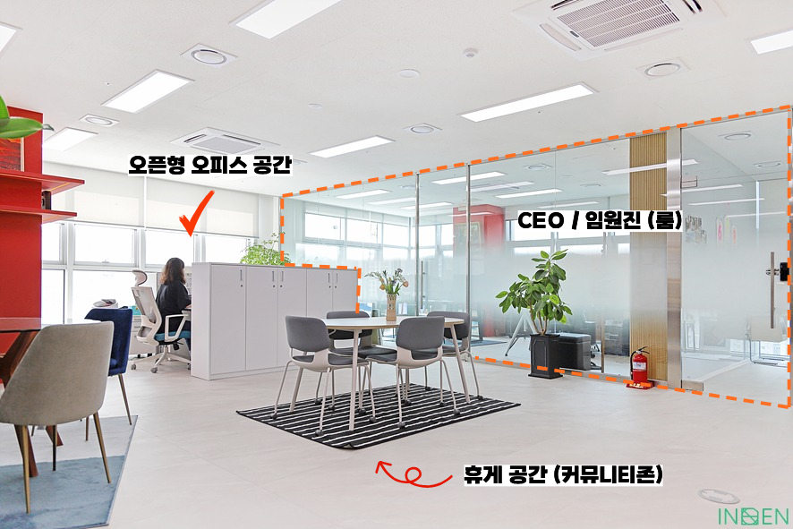 오피스 공간(룸/오픈)과 회의실