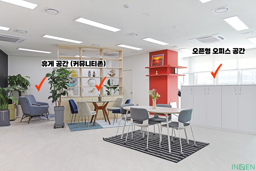 휴게 공간과 오픈형 사무 공간