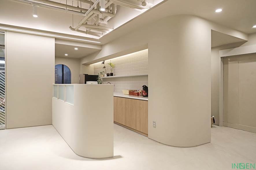 휴식, 회의 등의 공간을 담아내야 하는 중형 사무실은