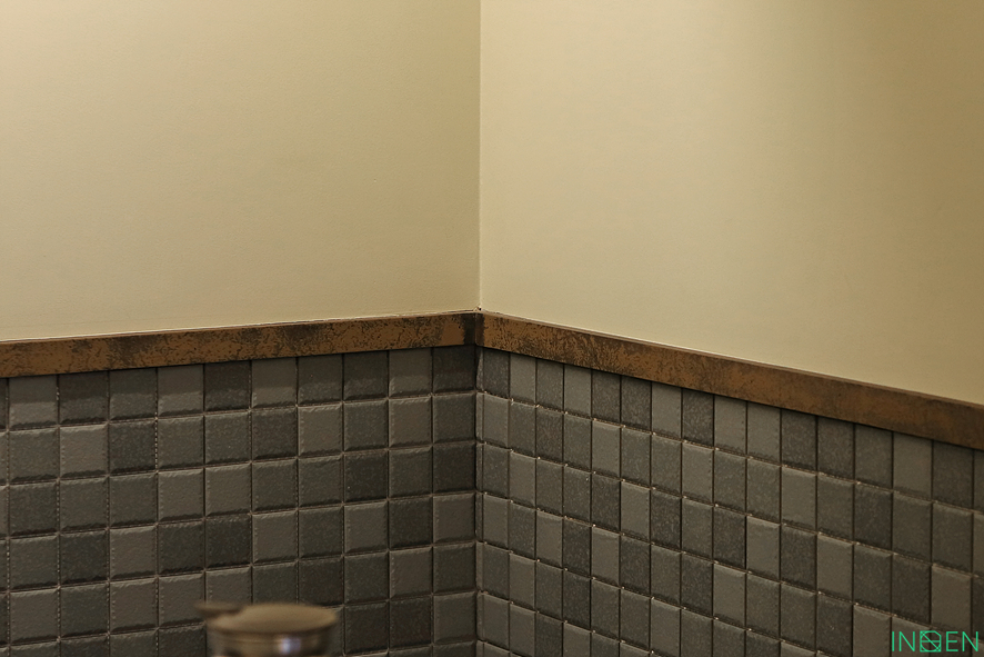 회색 계열의 미니 타일을 부착해 드렸어요.