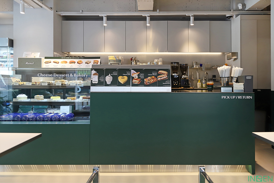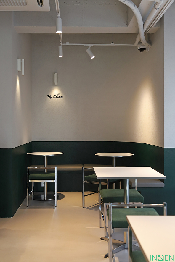 디저트 카페 인테리어 그린&그레이 조합 15평 선릉 더 치즈샵