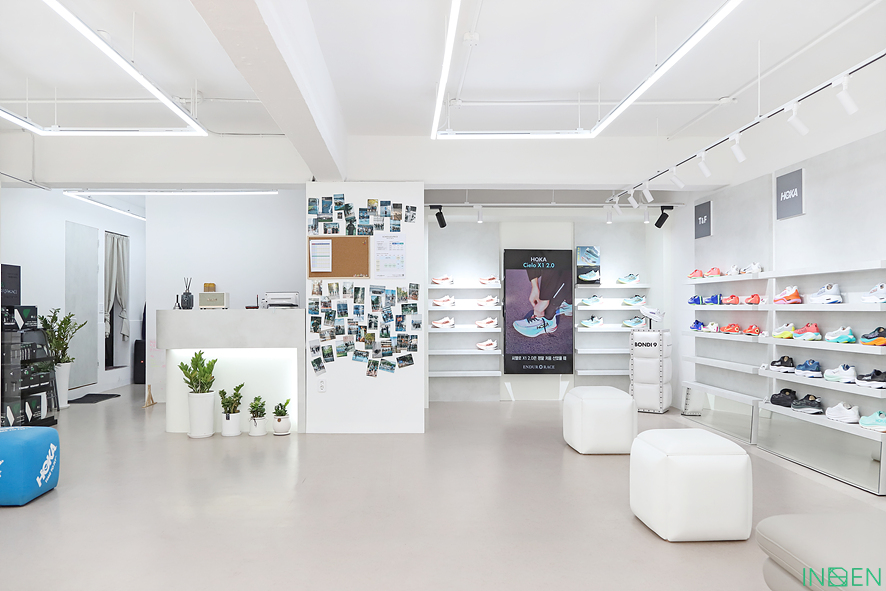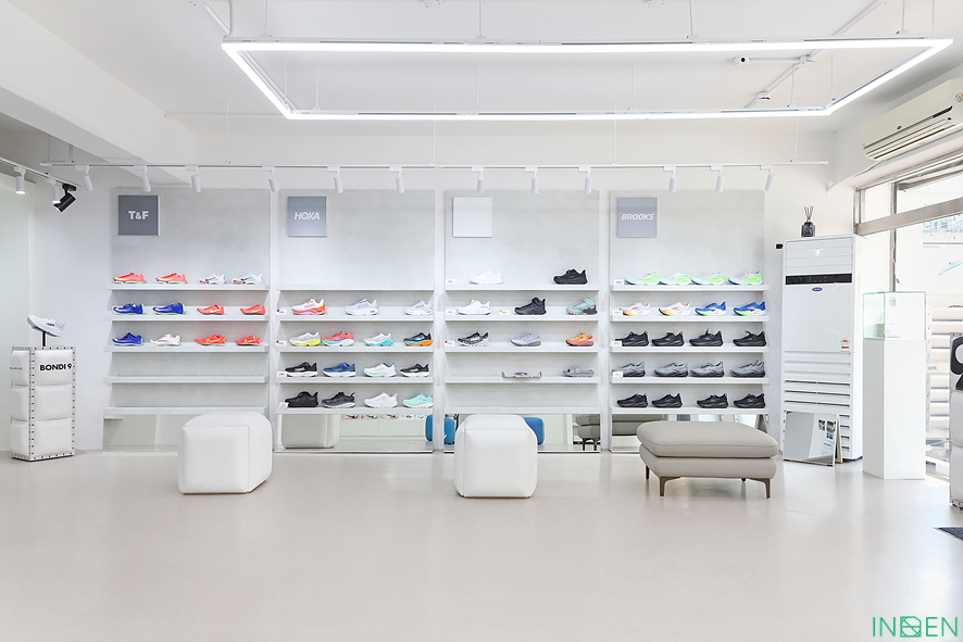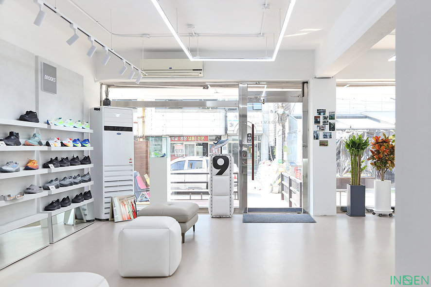 신발 매장 인테리어 화이트 톤으로 깔끔하게 30평 인천 E신발매장