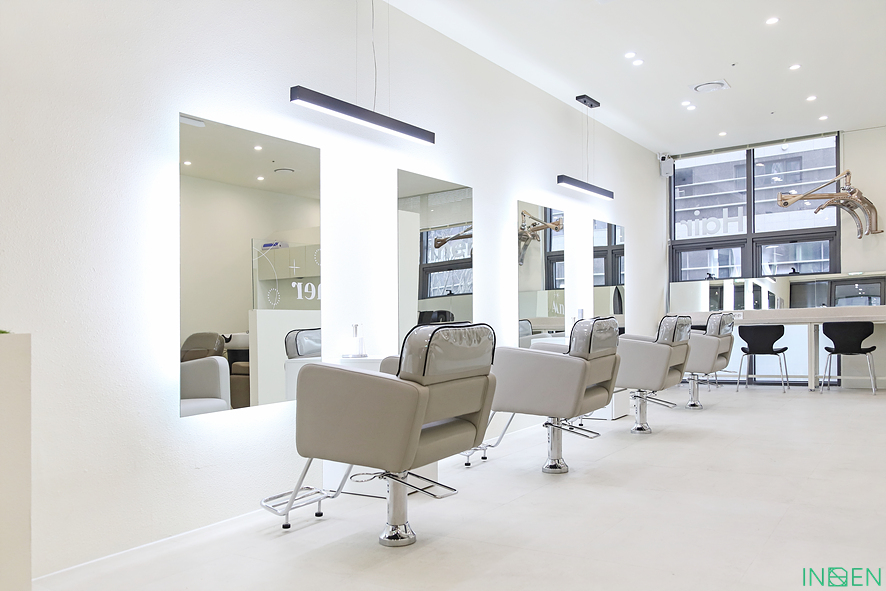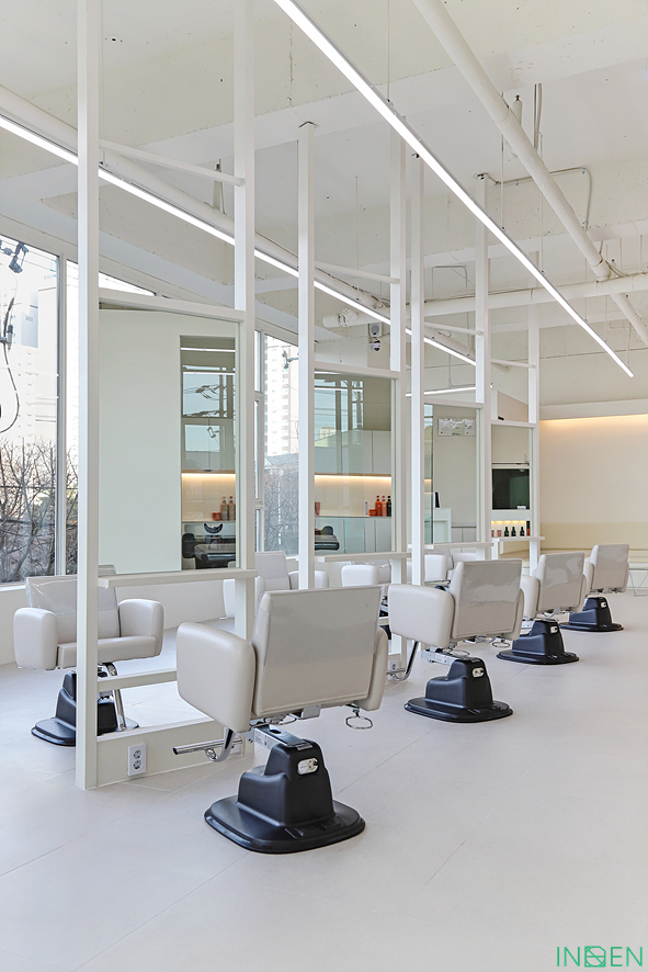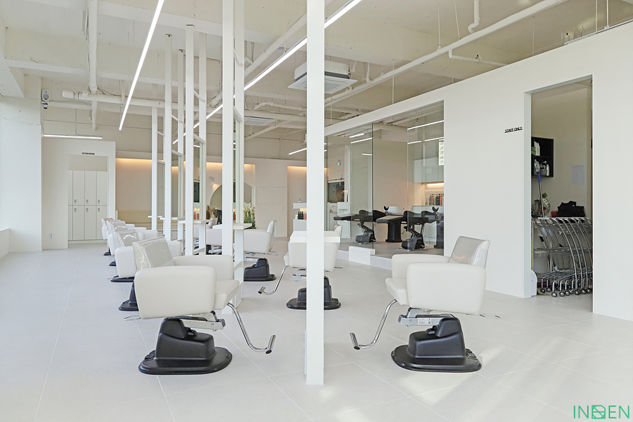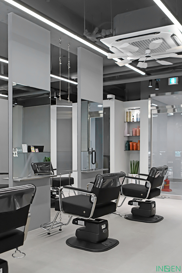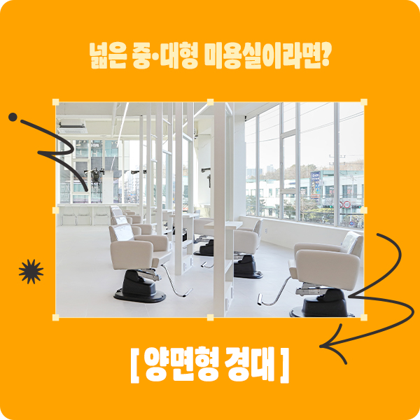 프렌차이즈 헤어샵에 적합한 레이아웃이죠.
