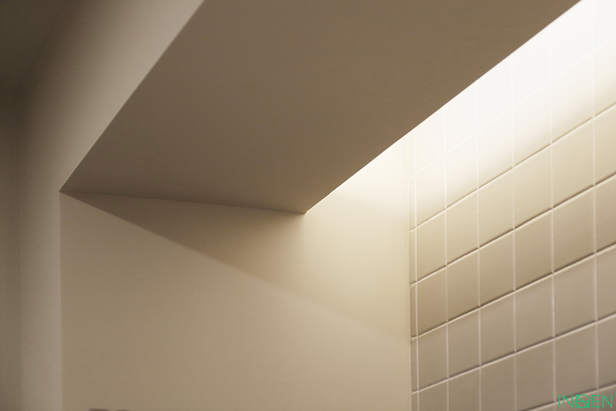 화이트 모자이크 타일로 벽면을 시공했어요.