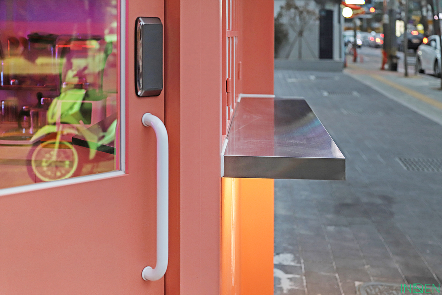 이곳은 네온 조명과 스테인리스 소재를 활용해