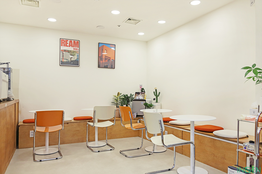 카운터 옆까지 벤치형 좌석을 길게 두어