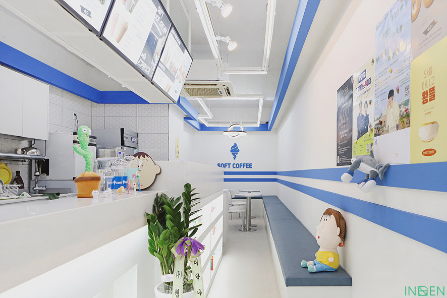 청량한 색감을 외부와 내부 곳곳에 활용했어요.