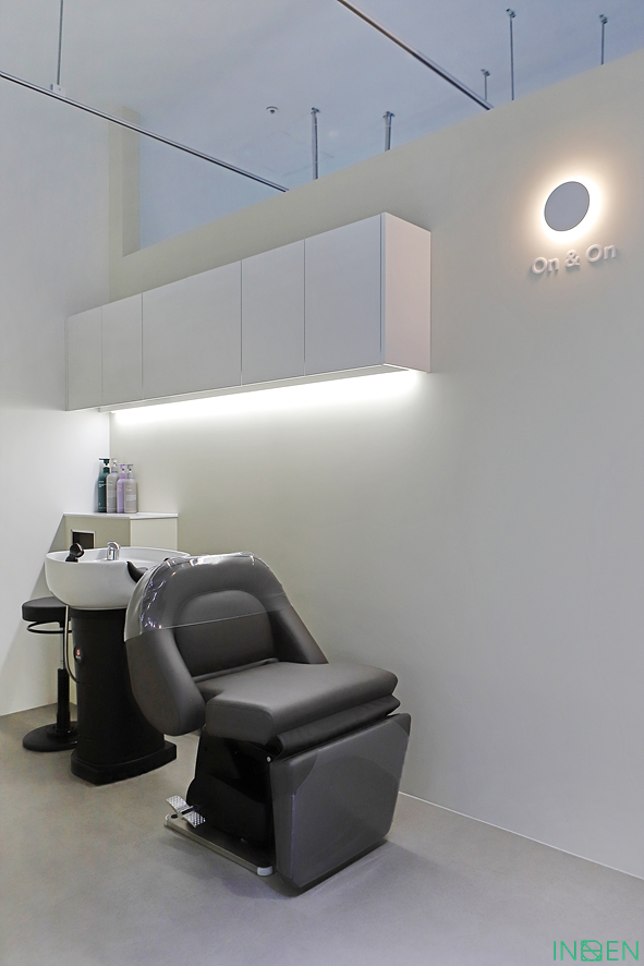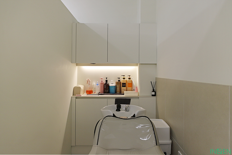 샴푸실과 카운터 사이에 놓인 가벽에서