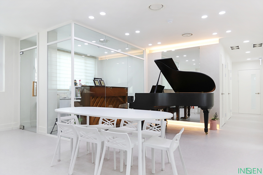 피아노 교습소 인테리어 화이트 톤의 30평 강서 K피아노학원