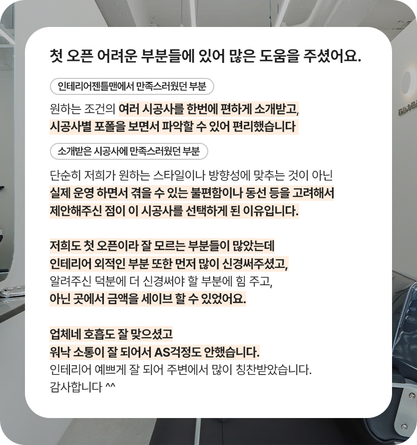 고객님이 남겨주신 인테리어 후기를