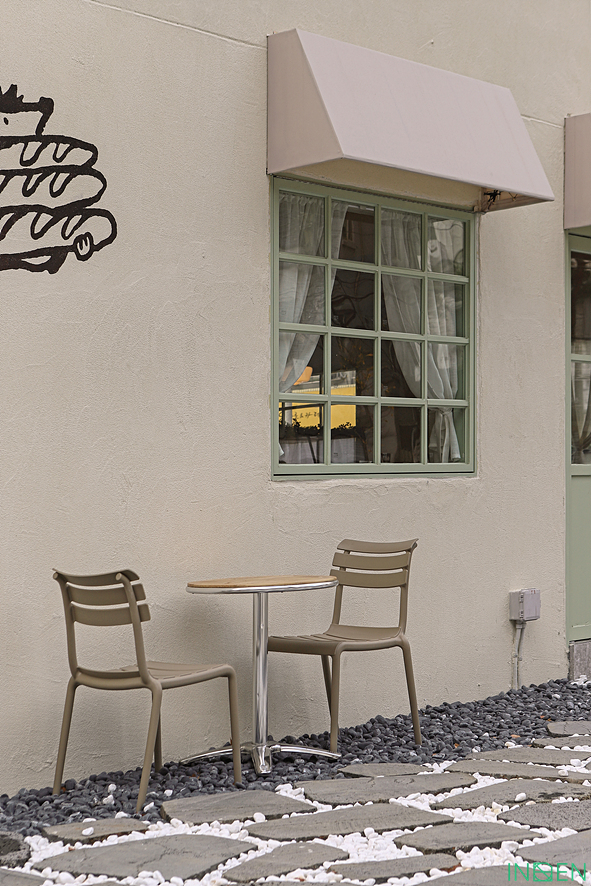 격자무늬의 창과 어닝을 조합하였고,