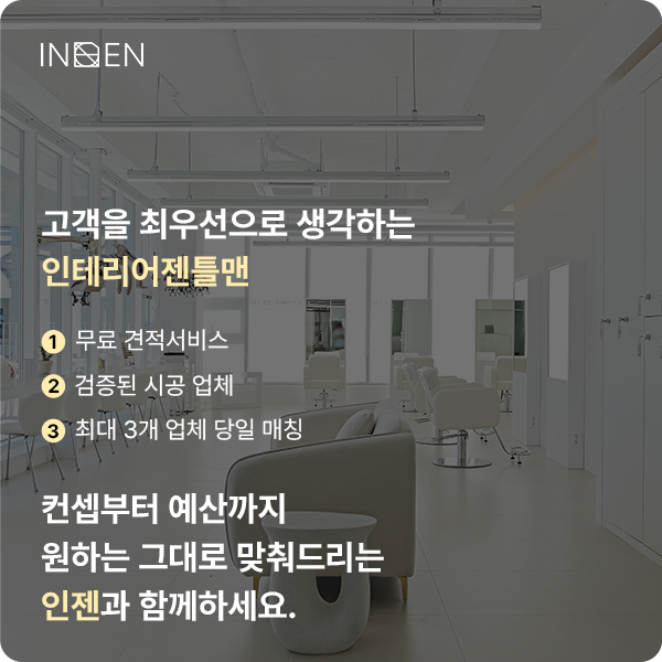 | ✅ 전국 100여 곳 이상 우수 시공사 제휴 ✅ 최대 3곳 비교 견적 무료 ✅ 완공 후 1년 무상 A/S ✅ 전문 포토 촬영 서비스 지원 ✅ 각종 제휴 서비스 제공 (토스플레이스, 3사 통신사 등) |