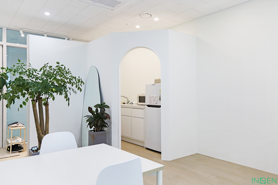 가벽을 세워 독립된 탕비 공간을 확보했습니다.
