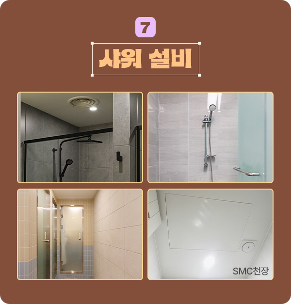 그중 샤워시설은 방수, 배수, 타일, 천장 마감까지